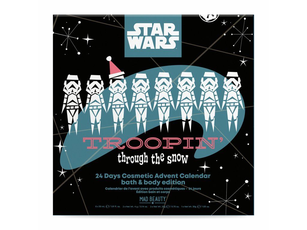 Každý den otevřete jedno okénko a dopřejte si nový galaktický dárek. Adventní kalendář Star Wars spojuje zábavu s praktickou péčí o tělo a je skvělým překvapením pro všechny fanoušky této legendární filmové ságy.