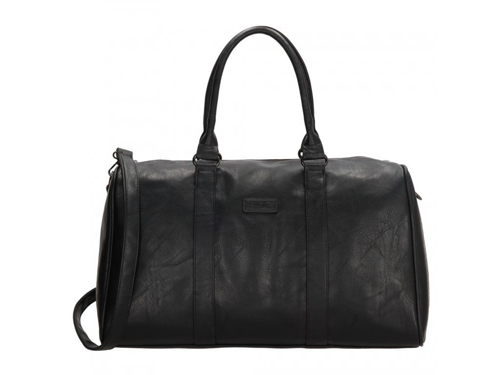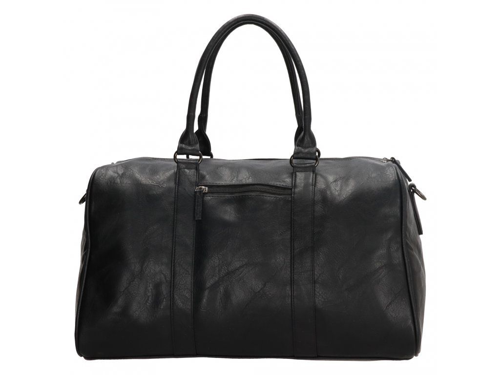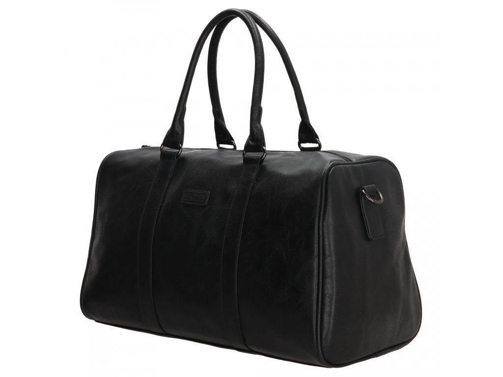 Praktická cestovní taška z umělé kůže v černém provedení o objemu 25L.