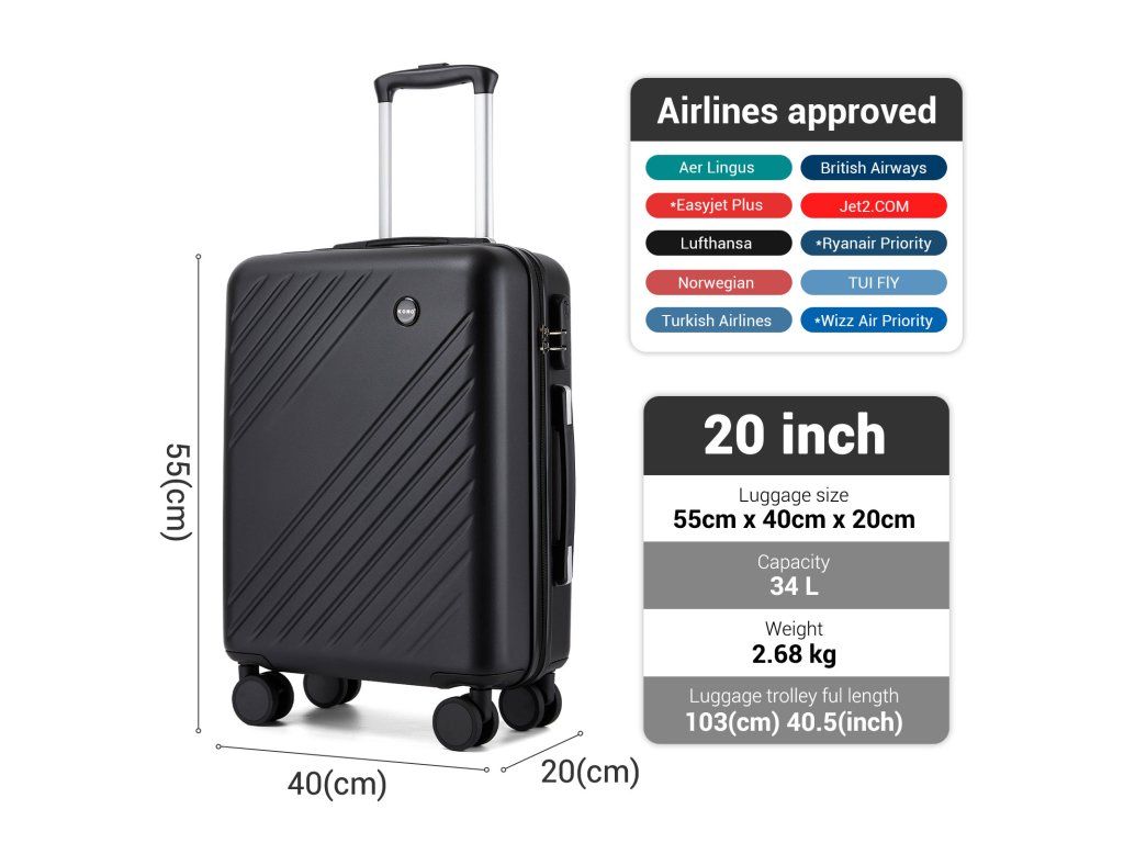 Kabinový kufr KONO je navržen tak, aby splňoval požadavky většiny leteckých společností na příruční zavazadla. Díky tomu se vyhnete odbavení kufru a budete mít své věci vždy po ruce.
