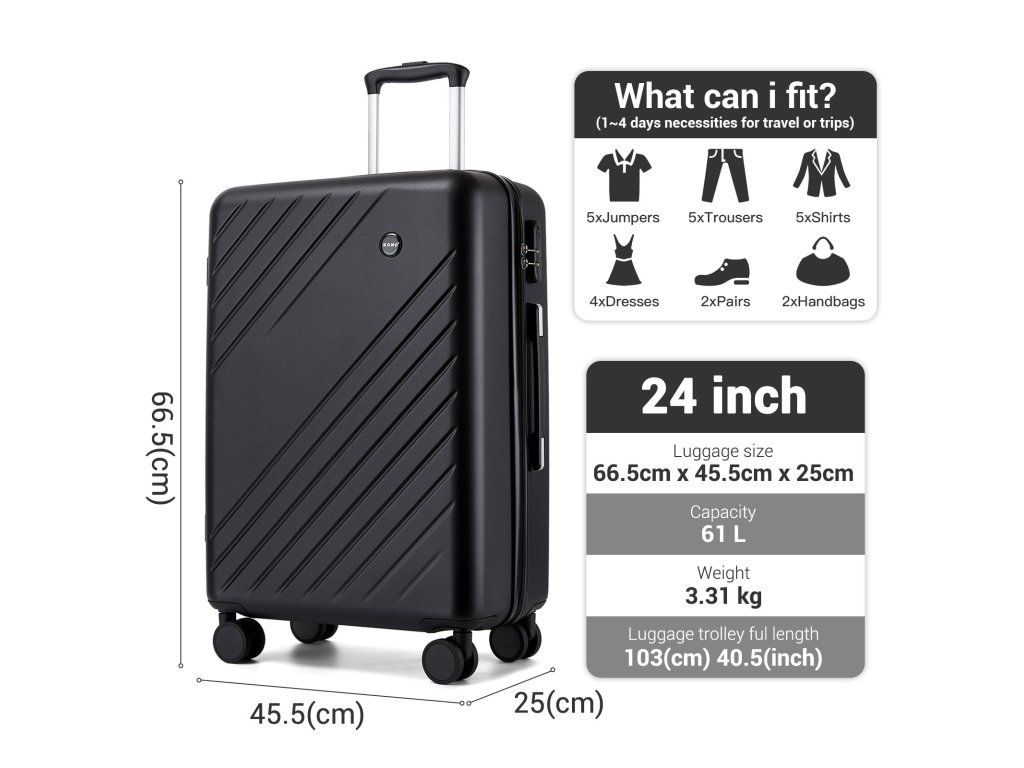 Střední kufr KONO nabízí objem kolem 61 litrů, což z něj dělá ideální řešení pro většinu cest. Ať už plánujete týdenní dovolenou, pracovní cestu nebo kratší pobyt, tento kufr poskytne dostatek prostoru bez zbytečné velikosti navíc.