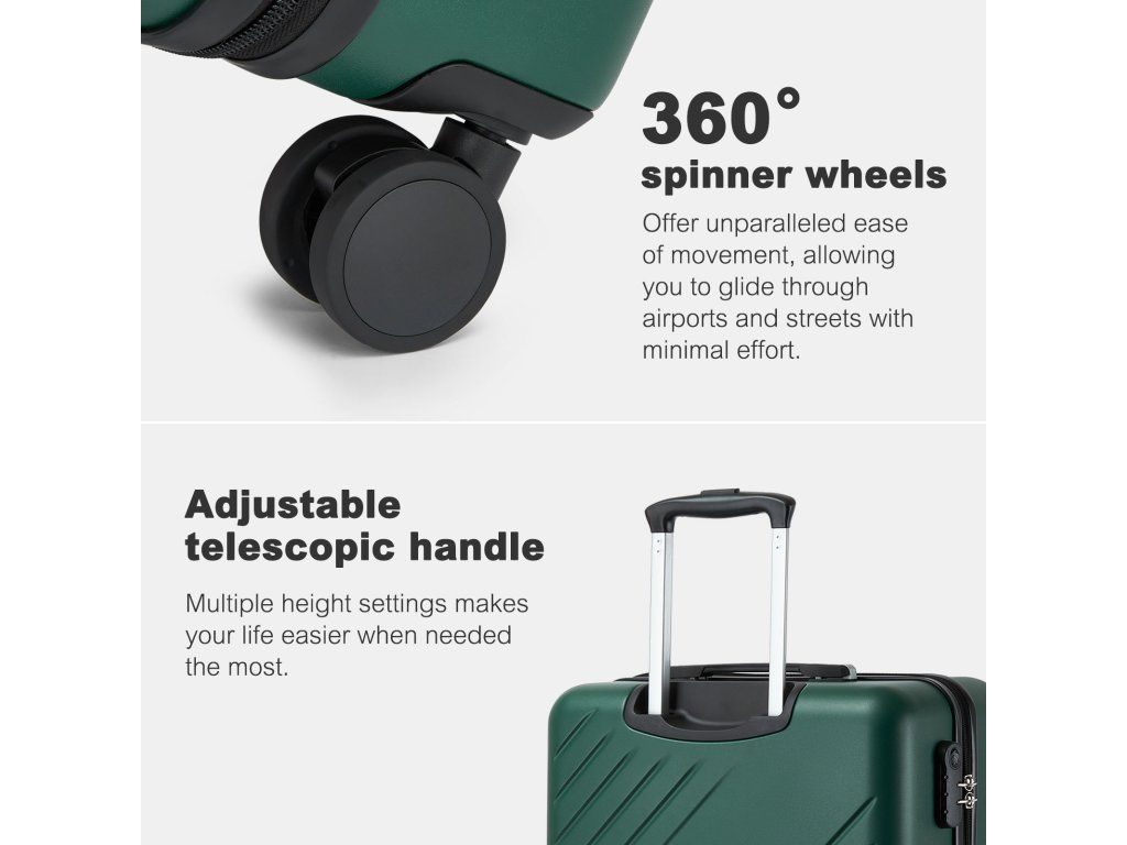 Zelený kufr KONO je ideální volbou pro každého, kdo chce cestovat stylově, přehledně a bez kompromisů - s maximálním prostorem a jistotou na každé cestě. 🧳✈️