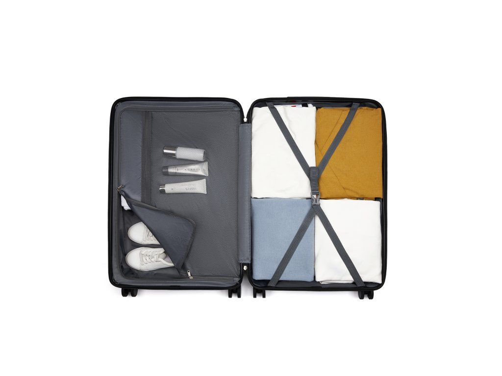 Vnitřní prostor je navržen tak, abyste měli ve věcech vždy přehled. Fixační popruhy drží oblečení na místě, síťovaná přepážka odděluje jednotlivé části a kapsy pomáhají uložit drobnosti přesně tam, kde je potřebujete.