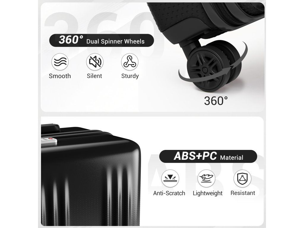- 🛡️ Odolná konstrukce: Kombinace ABS a polykarbonátu chrání kufr před nárazy i poškrábáním.
