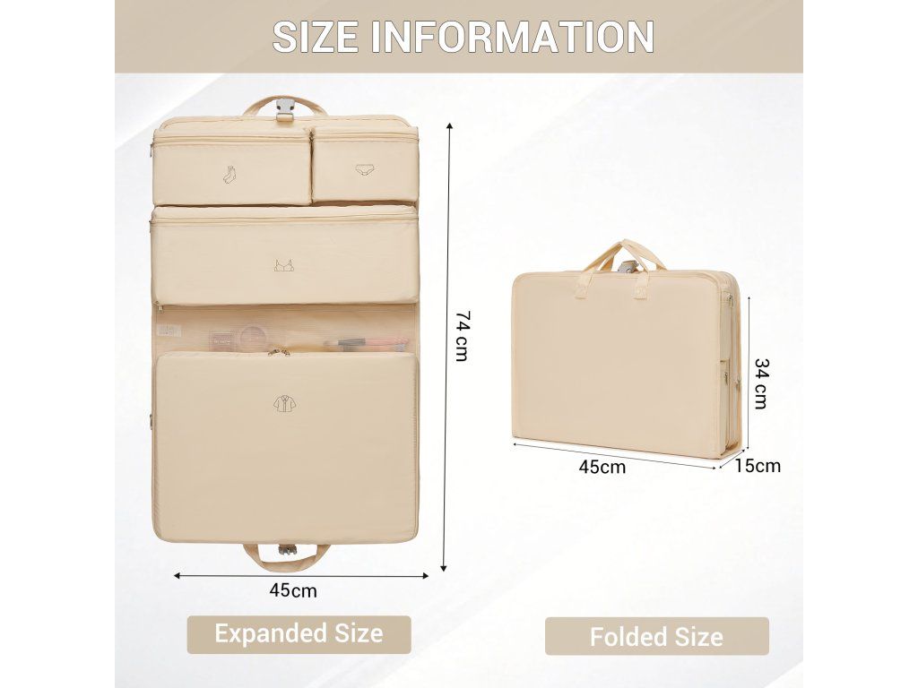 - 🪝 Závěsný systém: Po rozložení můžete organizér jednoduše zavěsit do skříně, koupelny nebo na hotelový věšák.