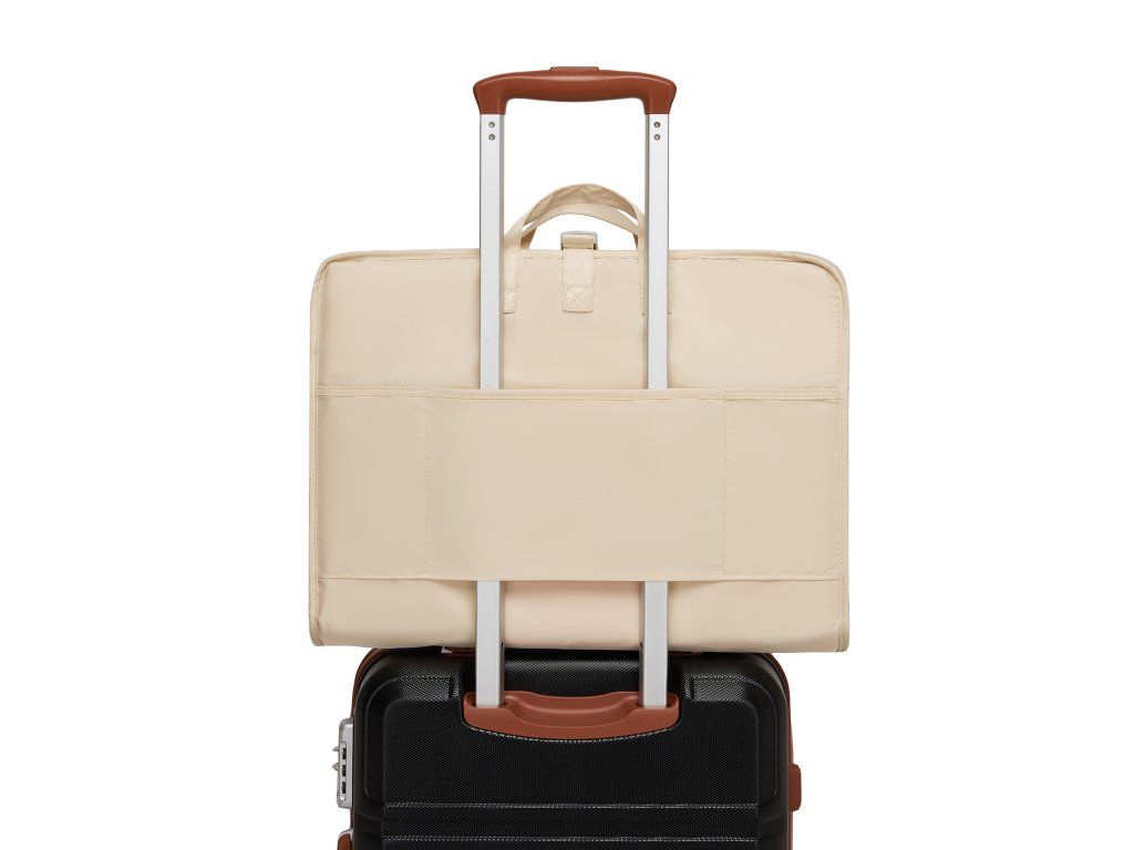 Zadní popruh umožňuje nasunutí organizéru na teleskopickou rukojeť kufru, což oceníte zejména při přesunech na letišti nebo během cestování.