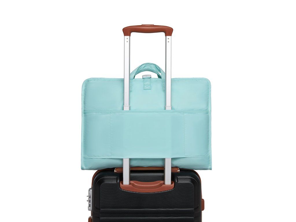 Zadní popruh umožňuje nasunutí organizéru na teleskopickou rukojeť kufru, což oceníte zejména při přesunech na letišti nebo během cestování.