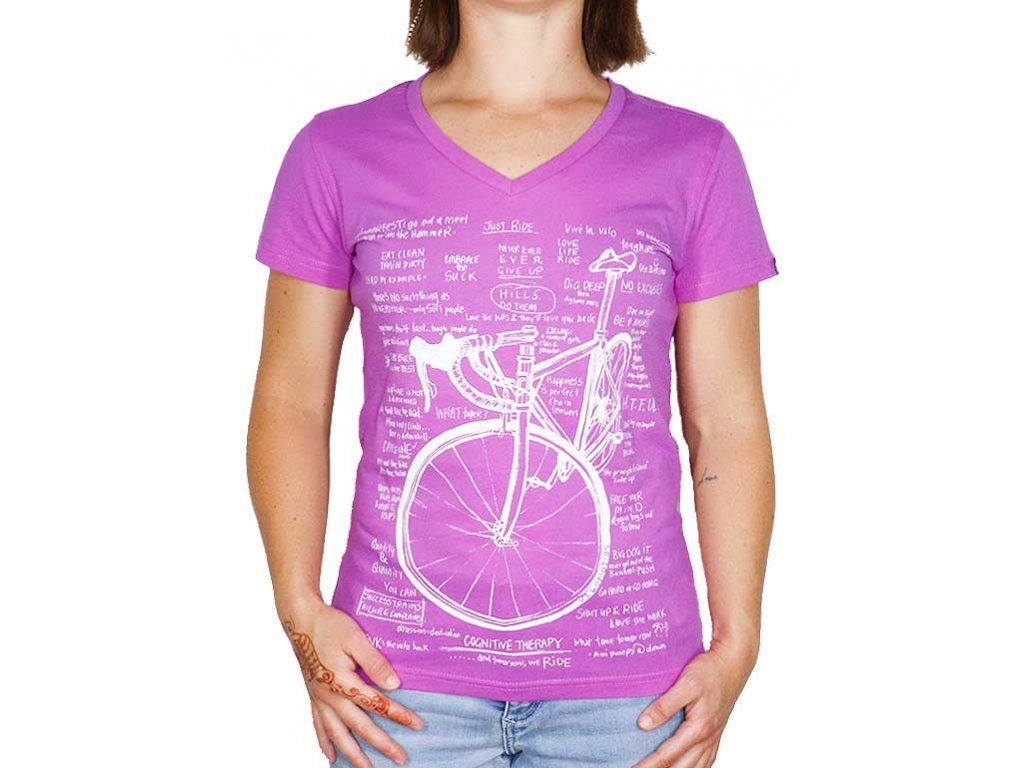 Vysoce kvalitní dámské tričko s cyklistickou tématikou od Australské značky Cycology. Motiv Cognitive Therapy - růžová