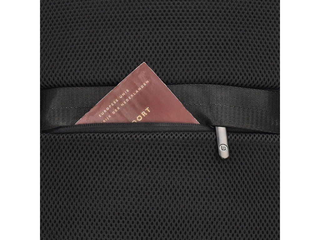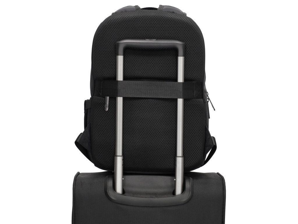 - Popruh na kufr: Zadní pásek umožňuje upevnění na výsuvnou rukojeť zavazadla.