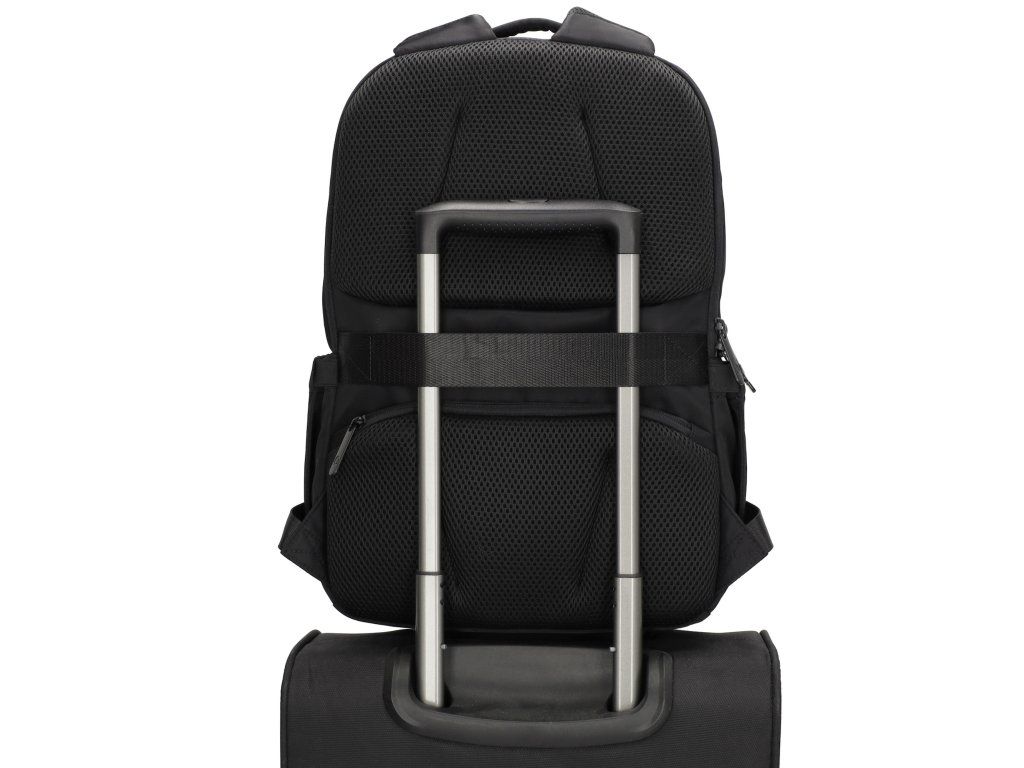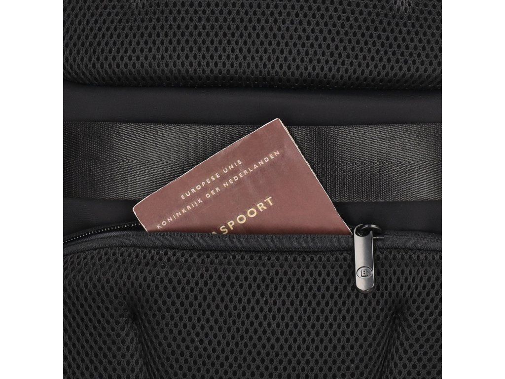 - Popruh na kufr: Zadní pásek umožňuje upevnění na výsuvnou rukojeť zavazadla.