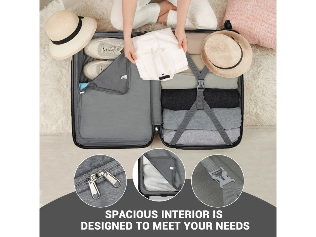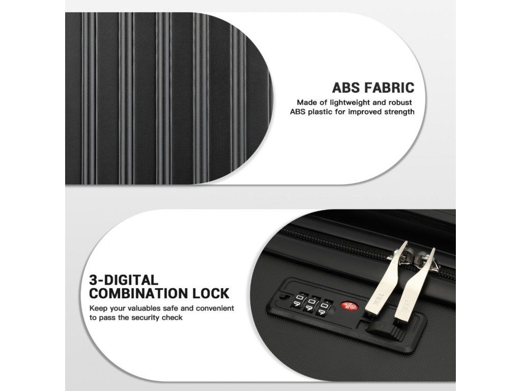 - 🛡 Odolný materiál ABS+PC: Kombinace pevnosti a pružnosti chrání kufr před nárazy a zachovává jeho tvar.