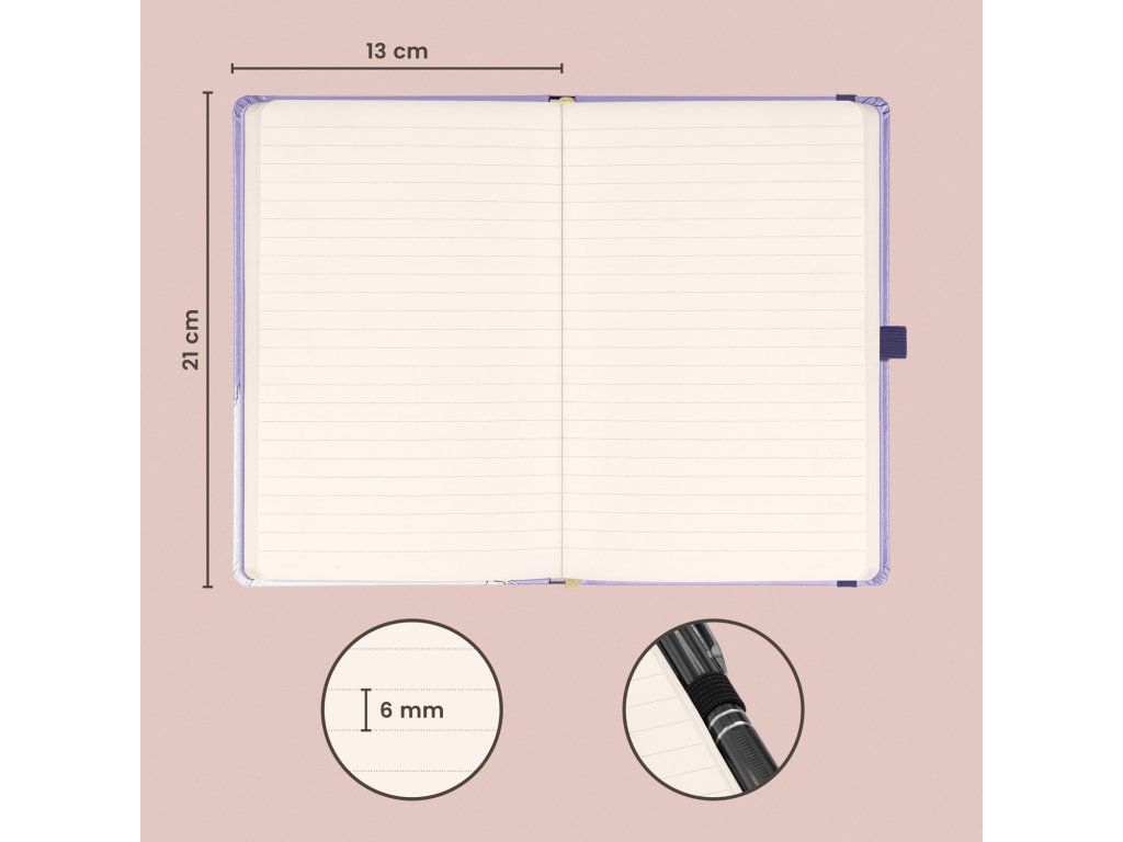 - Vazba: pevná knižní vazba s gumičkou a poutkem na tužku