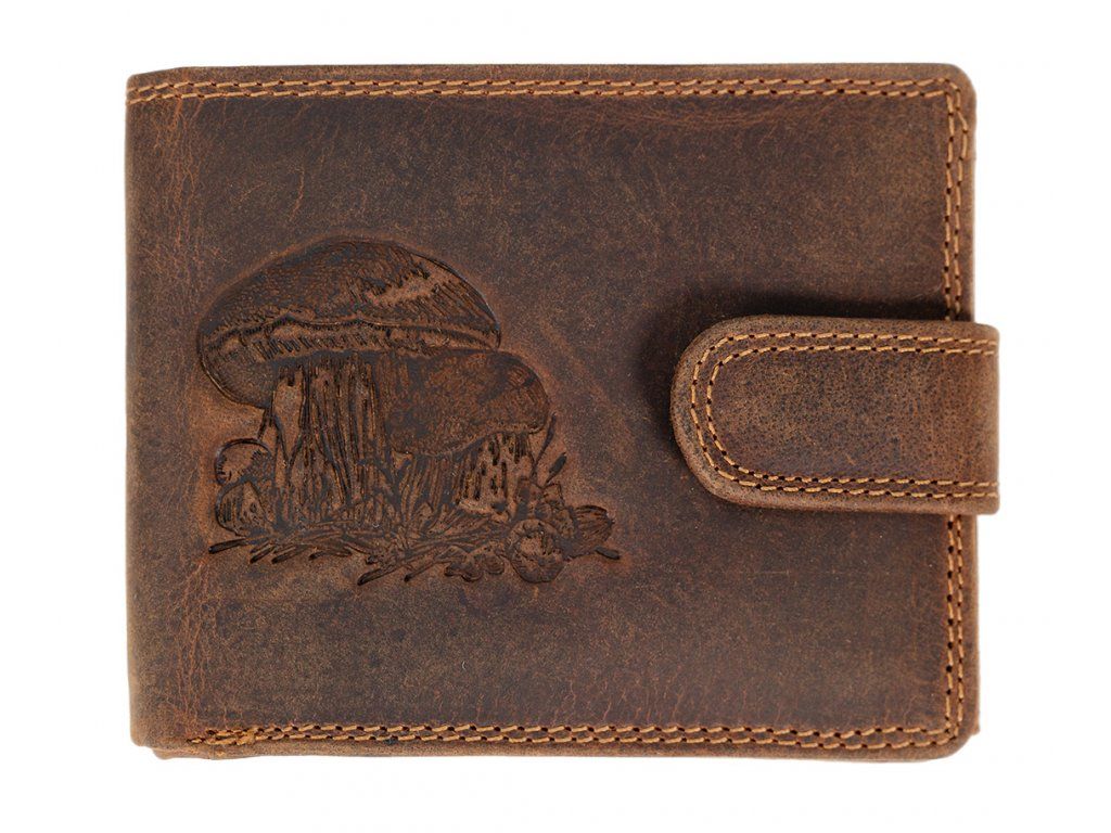 Luxusní pánská peněženka s hřibama - Hnědá