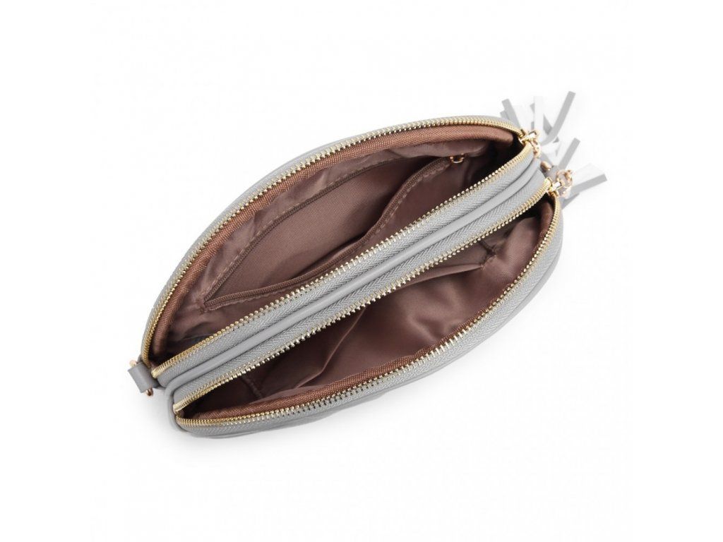 Moderní a velmi stylová dámská crossbody kabelka z umělé kůže s třásní. Vhodná pro spoustu příležitostí. Vyrobeno z umělé kůže v šedé barvě.