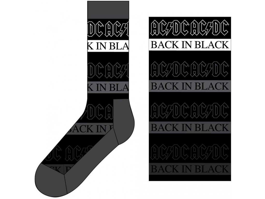 Oficiální licencované ponožky AC/DC s designovým motivem „Back In Black“. Vysoce kvalitní ponožky v černé barvě. Tyto vysoce kvalitní, barevné, celoplošně tkané bavlněné ponožky se vzorem zaručeně vyniknou v davu.
