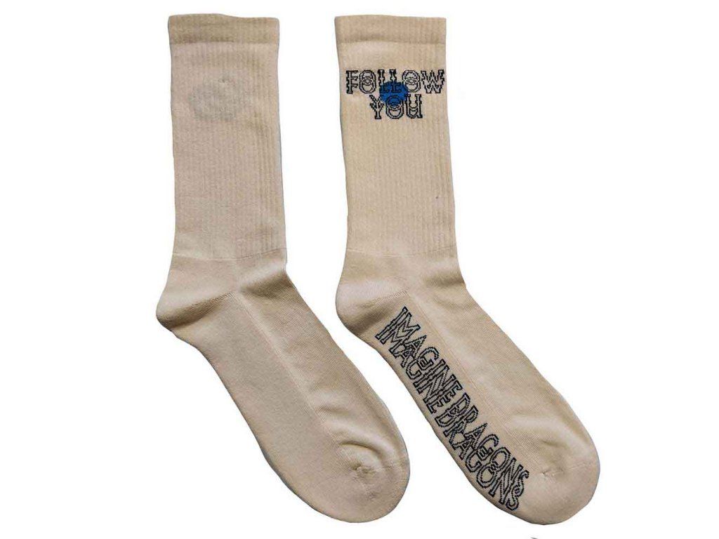 Oficiální licencované ponožky Imagine Dragons s designovým motivem FOLLOW YOU. Vysoce kvalitní ponožky v béžové barvě. Tyto vysoce kvalitní, barevné, celoplošně tkané bavlněné ponožky se vzorem zaručeně vyniknou v davu.