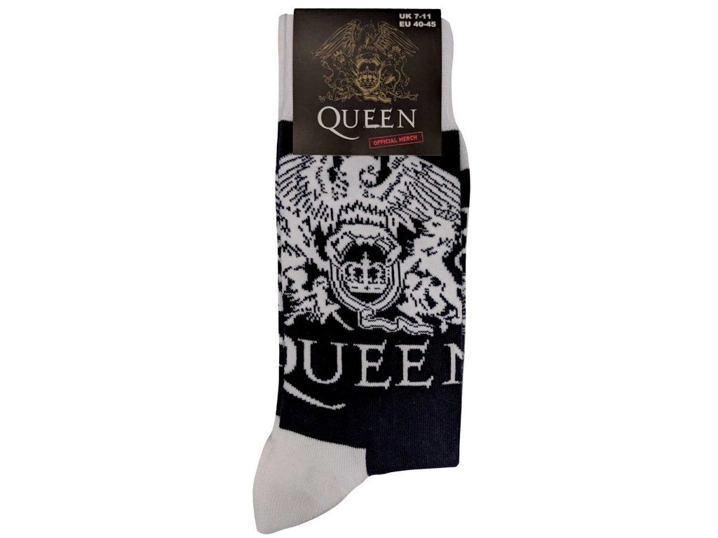 Ponožky Queen – White Crests jsou dokonalým doplňkem pro každého fanouška kapely Queen. Stylový design a komfortní materiál zajistí pohodlí po celý den, zatímco ikonický motiv přináší do každého kroku nádech rockové elegance.