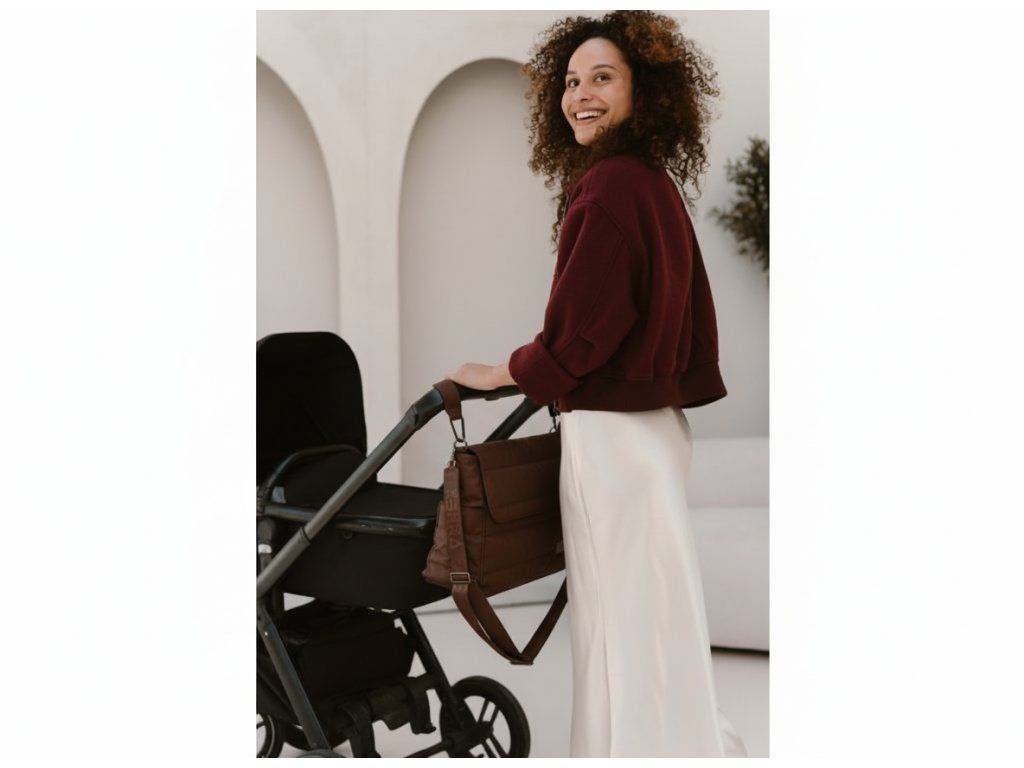 Stylová tmavě hnědá přebalovací taška, která vám usnadní každý den s miminkem a zároveň dodá šmrnc a eleganci. 🤎🍼✨