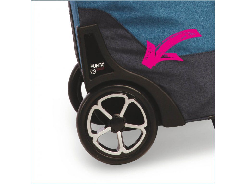 Nákupní taška Punta byla navržena tak, aby výrazně usnadnila přepravu těžších nákupů. Díky velkým kolečkům se taška pohybuje hladce i na nerovném povrchu, například na chodníku, dlažbě nebo parkovišti. Při chůzi ji jednoduše táhnete za teleskopickou rukojeť a váha nákupu zůstává na kolečkách.