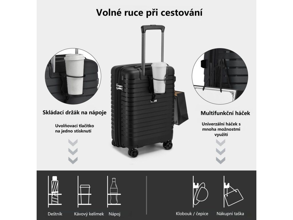 - Sklopný držák na nápoj pro maximální pohodlí při čekání nebo přesunech