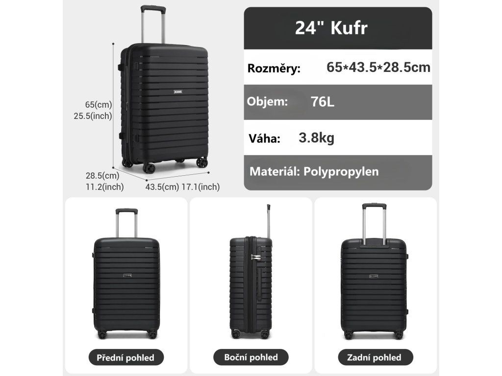 - 24" model: 65 cm (V) x 43,5 cm (Š) x 28,5 cm (H), hmotnost 3,8 kg, objem přibližně 76 l