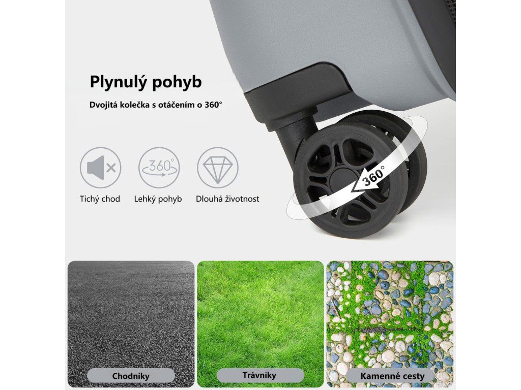 - 360° otočná kolečka s tichým chodem pro snadný pohyb na jakémkoli povrchu