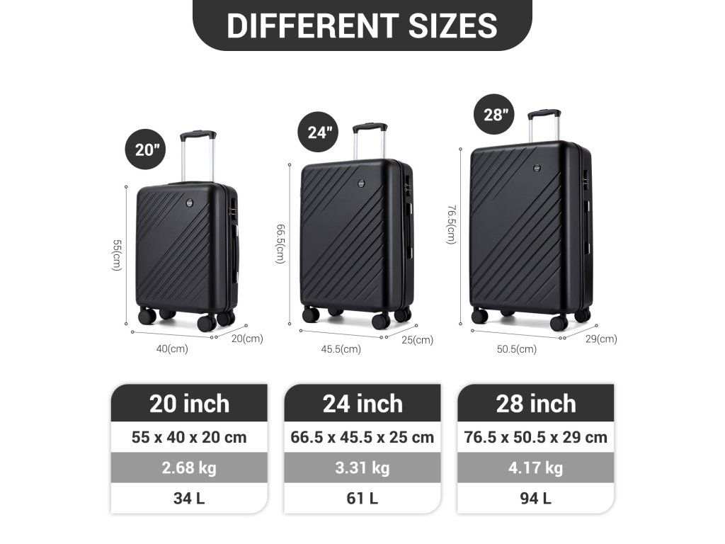 Sada cestovních kufrů ABS+PC KONO - černá - 34/61/94 L