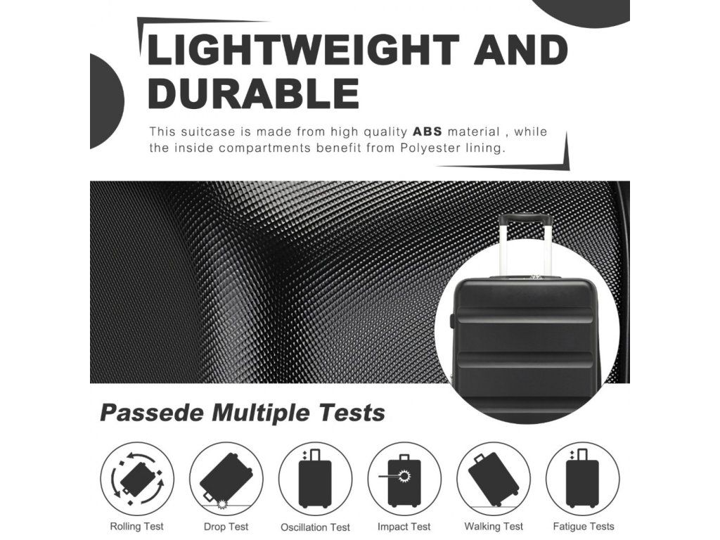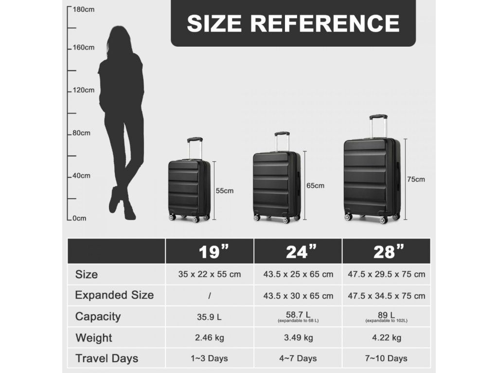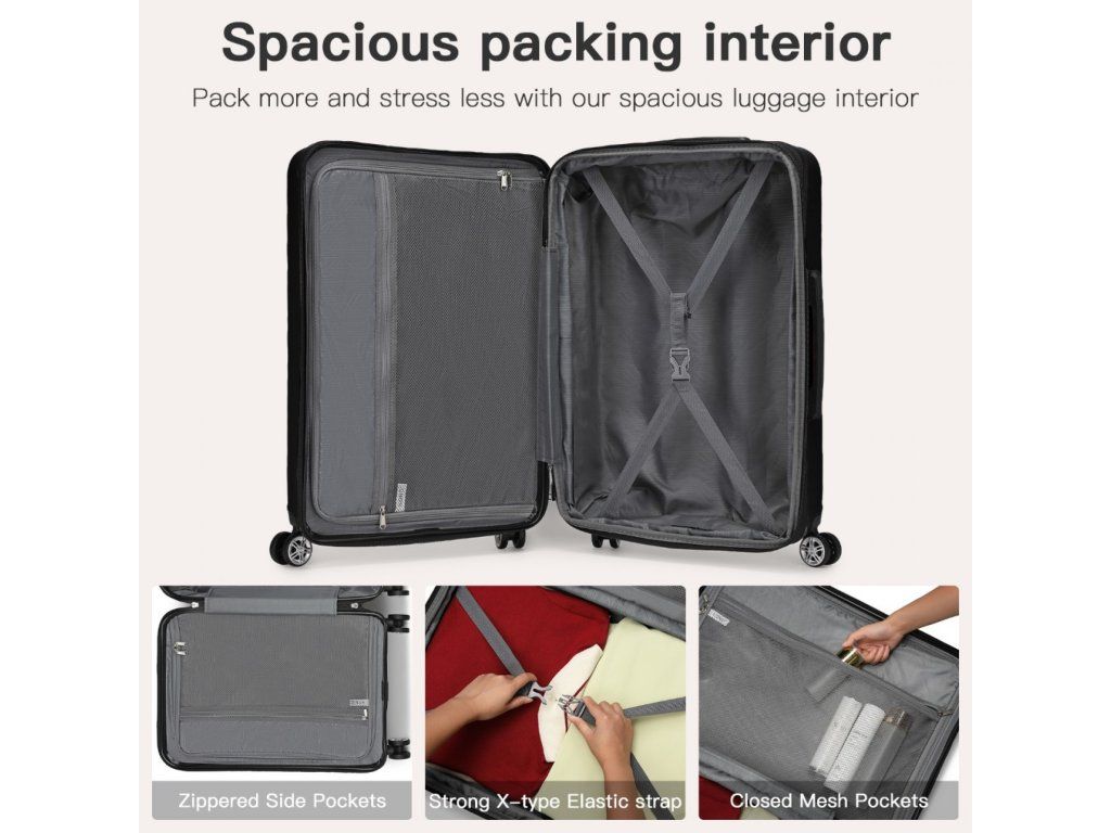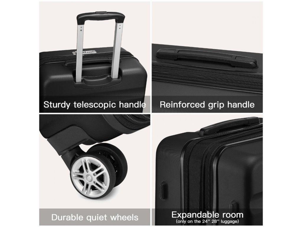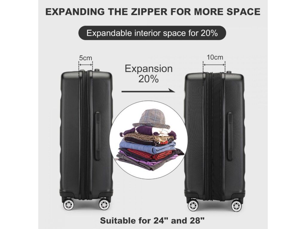 - 📦 Rozšiřitelný objem: Střední a velký kufr lze pomocí zipu rozšířit o cca 5 cm do hloubky.