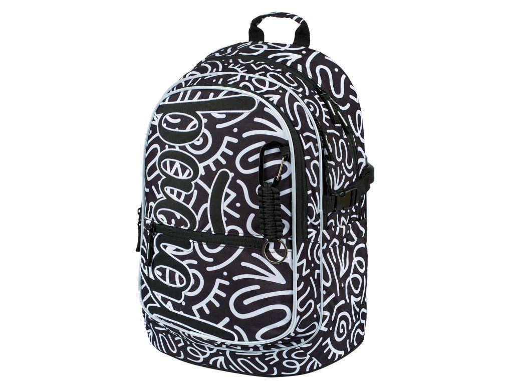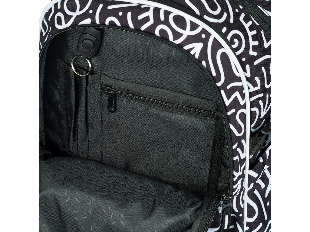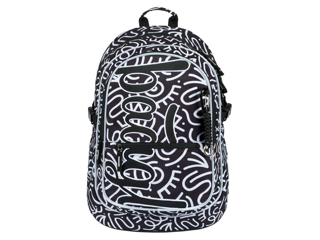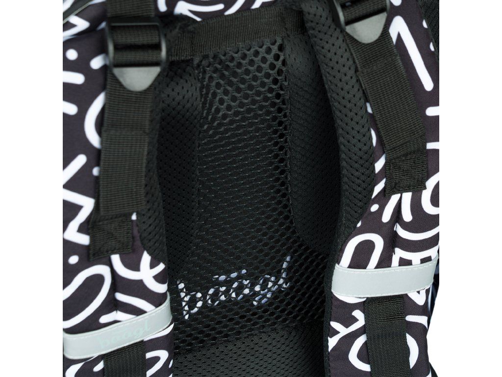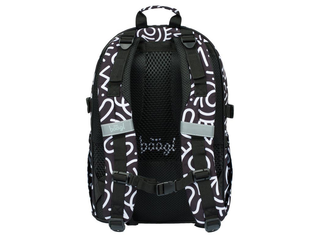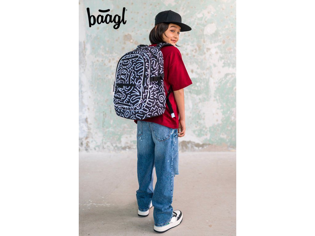 - Motiv Element: Černobílý grafický vzor s výrazným logem BAAGL.