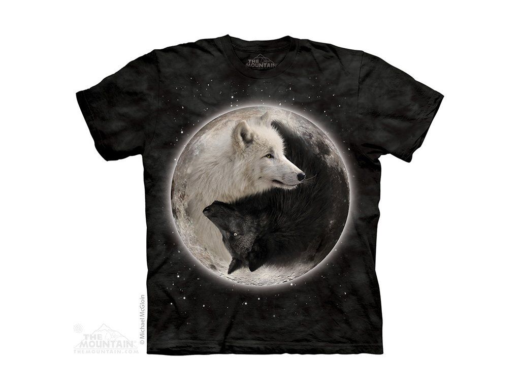 Bavlněné batikované tričko se speciálním patentovaným potiskem Ying Yang Vlci Střední gramáž, rovný volný střih, 100% bavlna. Kvalitní americká značka ekologických triček The Mountain. V černém provedení.
