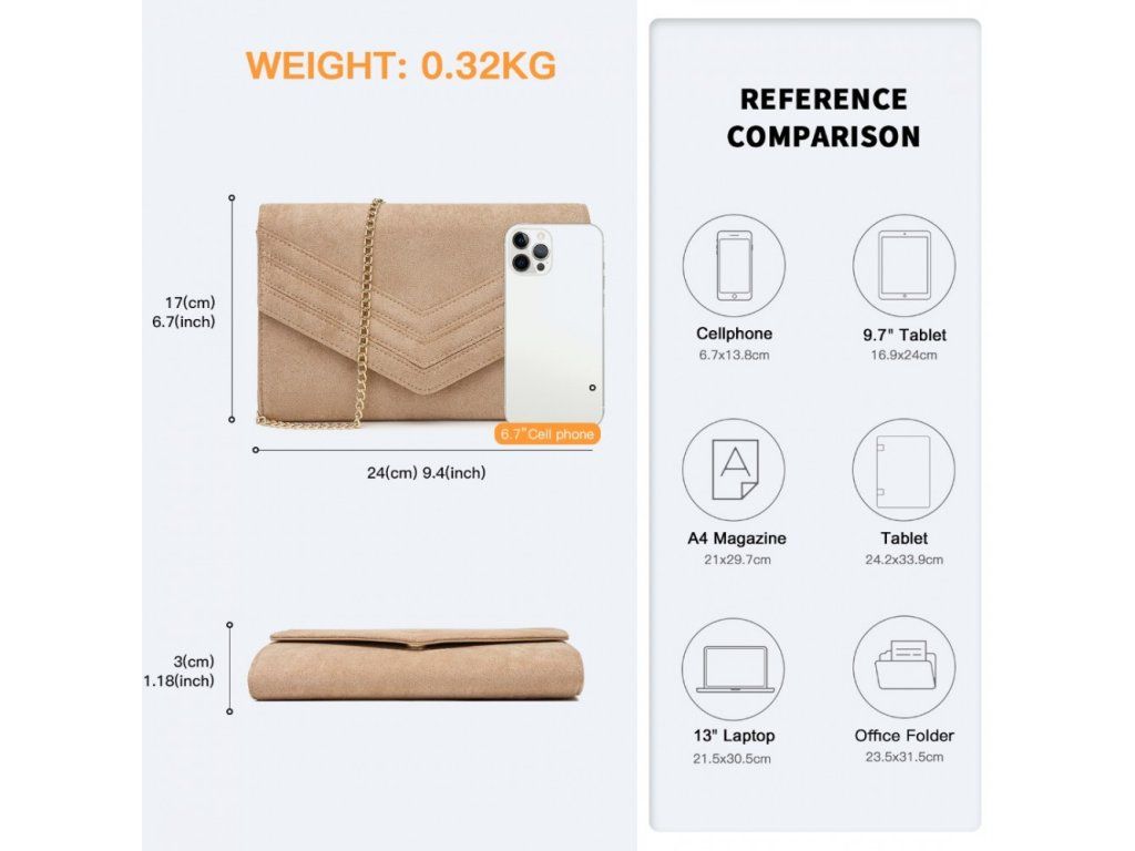 - Psaníčko do ruky: Bez řetízku pro kompaktní vzhled.