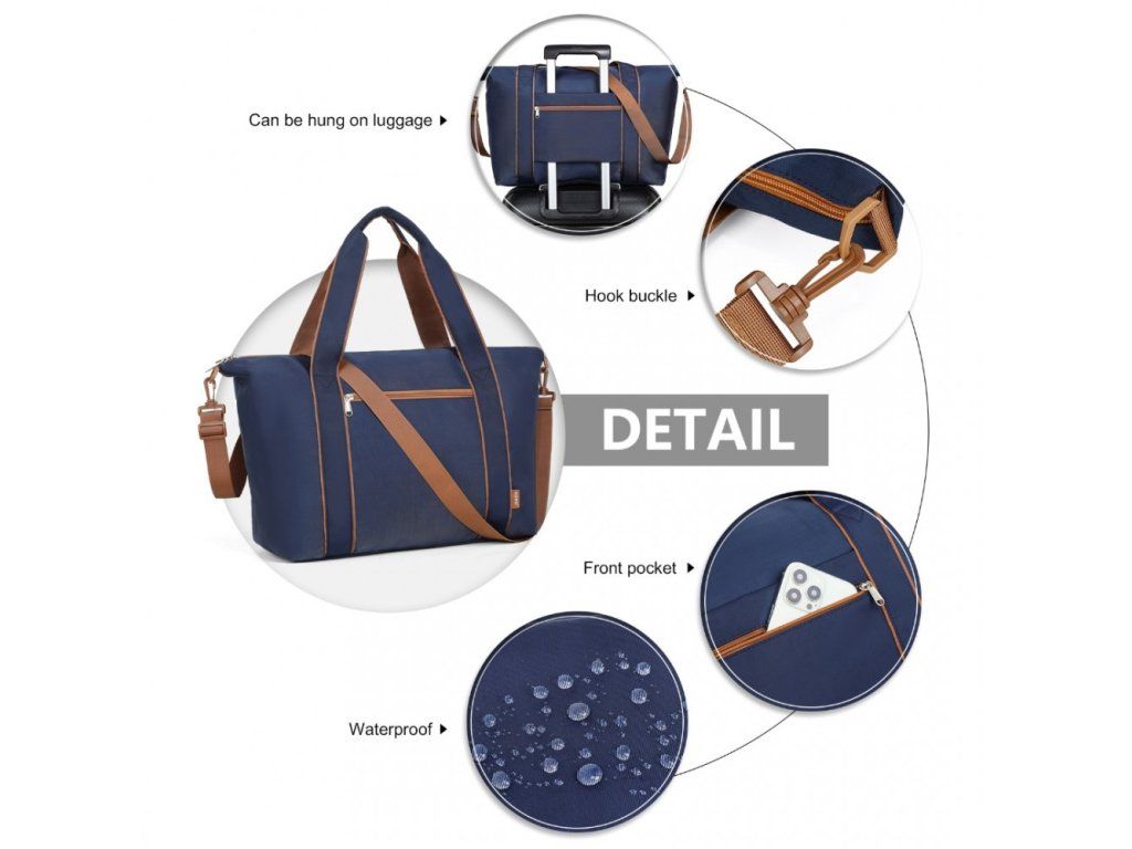 - Praktické kapsy: Přední kapsa na zip je ideální pro rychlý přístup k často používaným předmětům, zatímco zadní zipová kapsa slouží také jako rukáv na madlo kufru.