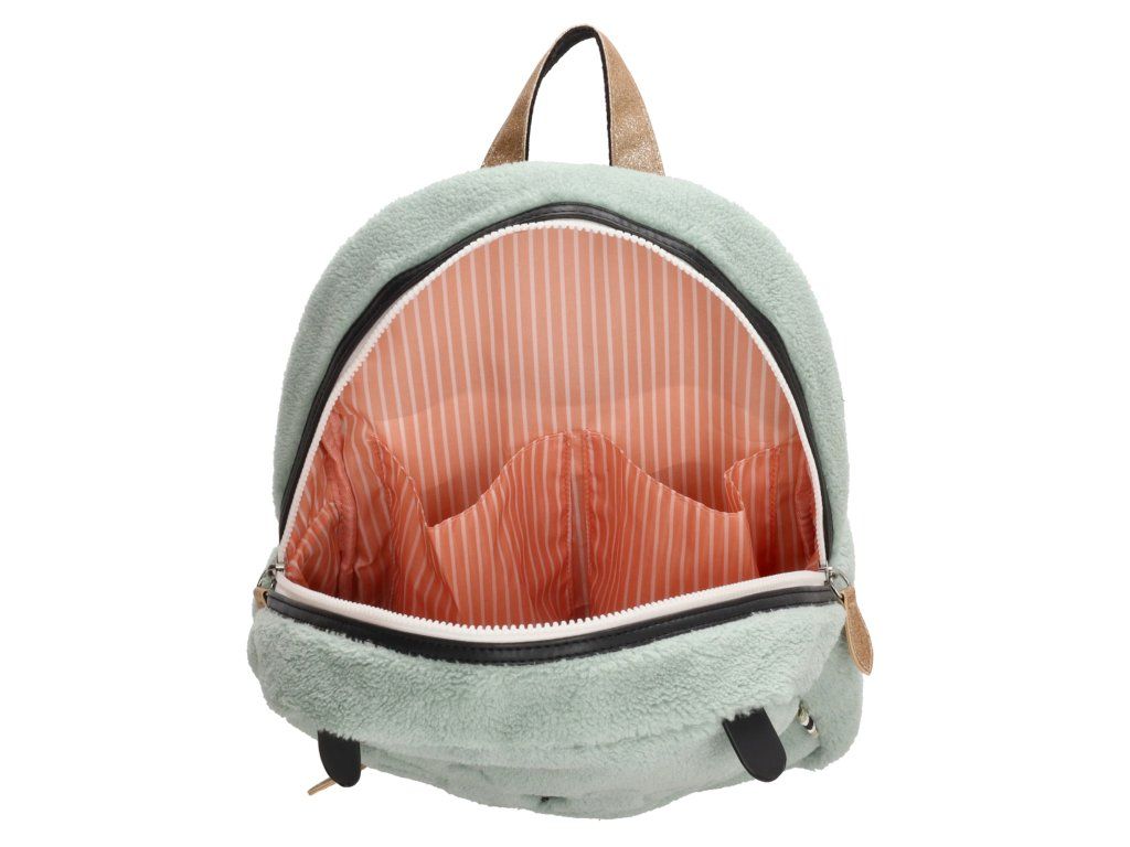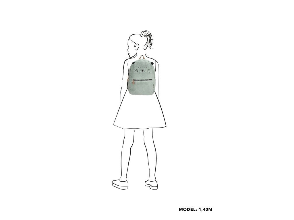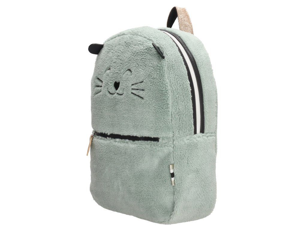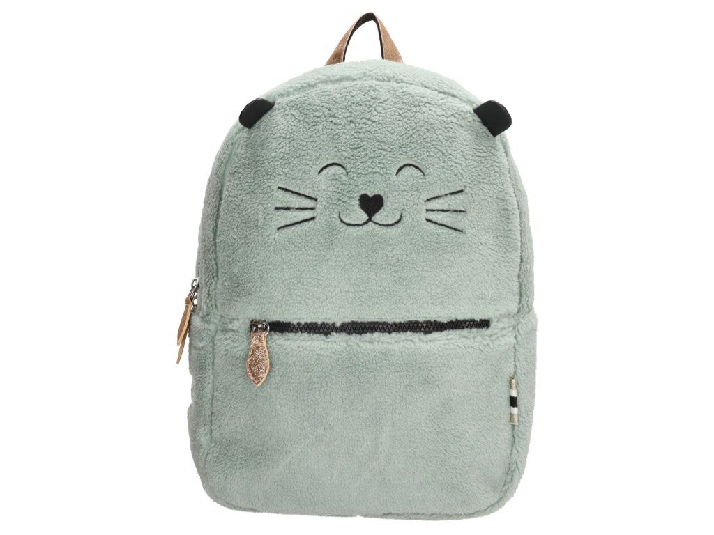 ZEBRA roztomilý dívčí plyšový batoh s kočičkou na přední straně. Batoh má nastavitelné ramenní popruhy a dobře organizované přihrádky které se zapínají na zip se zlatým detailem, proto je batoh stylový a praktický zároveň. V mint provedení.